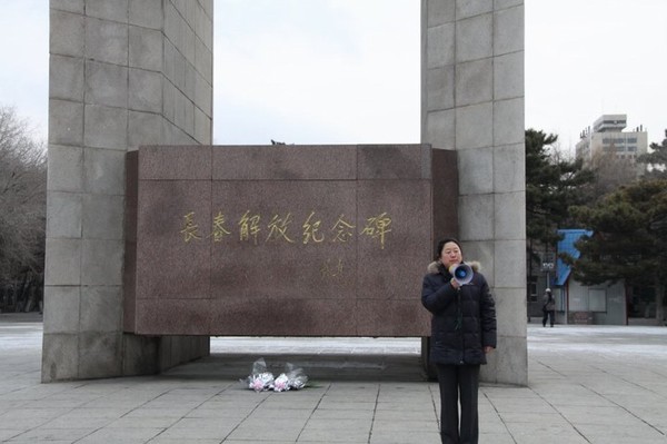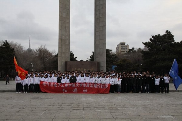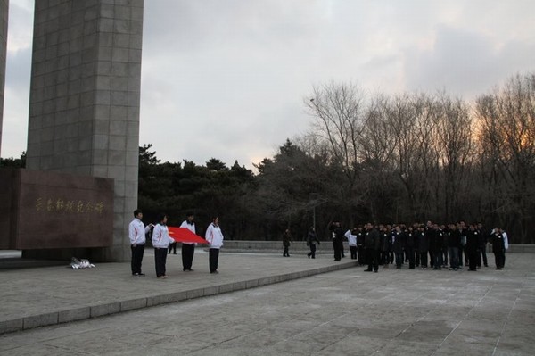 在庄重而严肃的氛围中,红旗社社长徐乐宣布活动正式开始。首先全体成员面对着先烈的纪念碑默哀一分钟,在默哀中我们向先烈寄托了我们无限的哀思。一缕缕哀思,一颗颗赤诚之心似一曲曲纯真的赞歌,献给敬爱的先烈,告慰英雄的忠魂。随后党员代表为烈士们献上了花束,而后郑洪斌老师带领全体学生党员在解放纪念碑前再次宣誓。并告诫同学们要珍惜今天来之不易的幸福生活,努力学习,争做新时代的大学生,把缅怀革命先烈的热情化做建设社会主义和谐社会的巨大动力,为国家的富强和繁荣昌盛贡献自己的力量。然后由学生代表冯畅发言,表达青年学子对老一辈革命烈士的敬仰和钦佩之情,要继承先烈们的光荣传统。不忘先烈遗志,牢记自己的使命,报效祖国。最后蒲春华老师为参加本次活动的全体成员讲解纪念碑的由来、回顾了长春解放时候的艰辛历程,革命先烈们用他们的生命创造了我们今天幸福的生活,作为新时代的青年更应该铭记先烈们的事迹,承担起新时代赋予的责任。牢记历史,居安思危,勿忘振兴中华民族的伟大使命和责任!