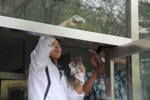 随后,同学们拿着抹布、扫把等工具展开了一场热火朝天的义务劳动。一队同学去打水,一队同学拿着扫帚去扫灰,剩下的同学则拿抹布去擦墙围子和玻璃,没有工具的同学甚至用手清理杂物。见到他们这样肯干的场面,后勤清扫员对此次参加劳动的同学们致以真诚的谢意,并赞扬了同学们的奉献精神。从此路过的老师和同学都竖起了大拇指,这是对他们义务劳动的爱心与责任给予肯定。在劳动过程中,每一位党员同学都发扬不怕苦、不怕累,全心全意为全校师生服务的精神,将各区域打扫得干干净净,焕然一新。  党员先锋队的成员们,用行动体现了为迎接校庆所贡献的力量。此次义务劳动让同学们通过实践深刻地体会到雷锋精神的真谛,增强了同学们的劳动意识,发扬了党员吃苦在前、乐于奉献的精神,对学院党建工作和迎接校庆工作的深入开展有着积极的作用。 |