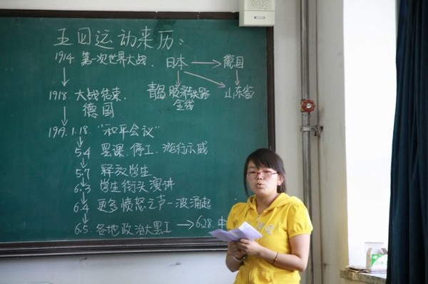 活动开始由学生党员王艳飞同学上台讲解。王艳飞同学介绍了五四运动的来历,“外争主权,内惩国贼”,1919年5月4日我国青年人的英勇行为使得全国掀起一股反帝爱国的热潮。如今,以“爱国、进步、民主、科学”为核心的五四精神,仍然值得当代青年的积极学习与传承。然后又讲述1914年的第一次世界大战到1919年的与五四所发生的事件。这使同学们重温一下历史,加深同学们对五四运动来历的印象。接下来由学生党员赵景兴同学结合近代发生的事件简述了自己对五四运动精神的理解和体会。并且强调当代青年应该如何做才能更好的体现五四运动的精神,借此来实现五四运动赋予当代青年使命和自我人生价值。用自己的行动去体现五四精神的深刻内涵,进而为祖国和社会贡献力量。最后郑老师进行了点评,他肯定同学们的学习态度,同时也提出同学的不足和自己的希望。并强调同学们可以分组学习,互相讨论,这样更有益于对五四运动的理解和以后的学习.