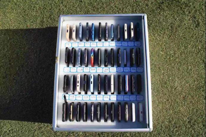 “快点,快点,马上就要集合了!”第一天的晨训同学们还是有些“措手不及”,军训来自教官的第一道命令:“全体都有上交手机!军训,就要有军人的样子,保证训练的纪律性,训练期间严禁玩手机!”存放箱就在面前,不一会就被就被同学们的手机填满……