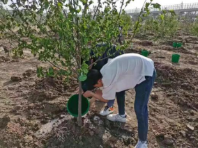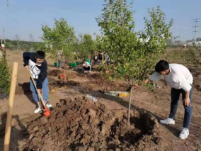 经过几个小时的紧张奋战,一棵棵树苗在春风中摇曳,待吐新绿,在明媚的春光中形成了一道美丽的风景线。每一个人望着自己亲手种植的树苗在微风中摇曳,心中有一种说不出的喜悦之情。