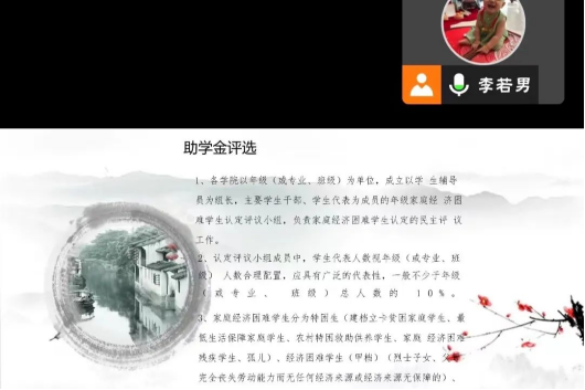 由李若男老师作“学生资助政策”线上讲座。在线上讲座中,李若男老师为同学们详细介绍了91猫先生