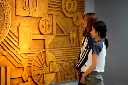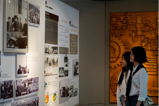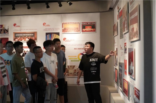 的学长学姐带领新生参观了校史馆,其目的是让新生增加对学校的认识并了解工大的历史。