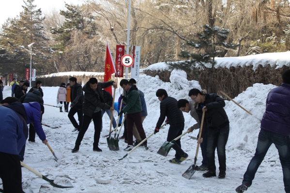| (通讯员 夏天竺)雷锋精神是中华民族精神的重要内容,体现了中华民族的传统美德,顺应了社会进步的时代潮流,彰显了党的先进本色,是社会主义核心价值体系的生动体现,是我们民族和时代弥足珍贵的精神财富。今年3月5日是毛泽东同志“向雷锋同志学习”题词50周年纪念日,同时也是第14个“中国青年志愿者服务日”。为了积极响应校党委《关于在全校深入开展学雷锋活动的实施意见》的号召,近日,学院开展了以“情系三月天,爱暖雷锋月”为主题的学雷锋志愿服务的系列活动,用爱心搭建起服务奉献的桥梁,用青春谱写一曲文明风尚之歌。 系列活动一:清扫积雪,用点滴小事践行雷锋精神 3月3日,学院党员先锋队志愿者自发组织清扫主楼门前积雪,大家齐心协力共同努力,路面焕然一新,为老师和同学的出行带来了方便,真正使雷锋精神落实到点滴小事、身边事!