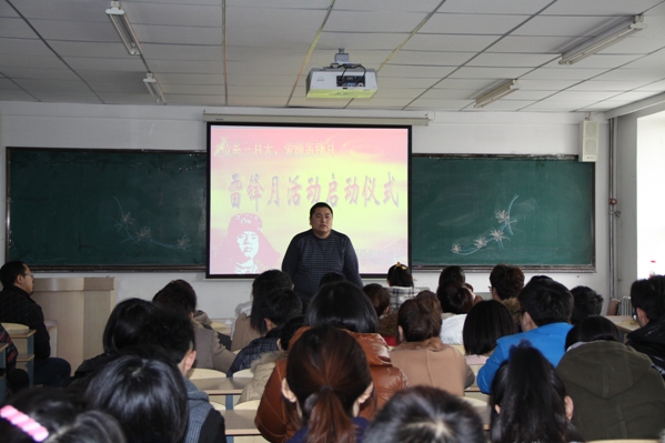系列活动二:“情系三月天,爱暖雷锋月”学雷锋志愿服务活动启动仪式 3月4日,学院召开了以“情系三月天,爱暖雷锋月”为主题的学雷锋志愿服务活动启动仪式,学院学生党支部书记郑洪斌和各团支部全体成员参加启动仪式。向全院同学发出学习雷锋事迹的号召,要求各班团支部通过主题团会等活动形式加大雷锋生平事迹和雷锋精神内涵的宣传力度,渲染学雷锋氛围;充分利用自身条件和资源,组织学生深入社区、参加义务劳动等,弘扬雷锋精神,让雷锋精神处处闪光。
