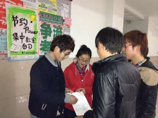 系列活动二:教室站——少用一个教室,多留几度光明 学生会宣传部的志愿者在91猫先生