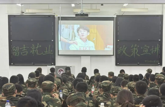 随后,新生们观看了留吉就业发展宣传视频。视频讲述了吉林的产业活力、政策温度与扎根学子的成长故事,让新生们“留吉就业” 的方向更清晰、期待更真切。