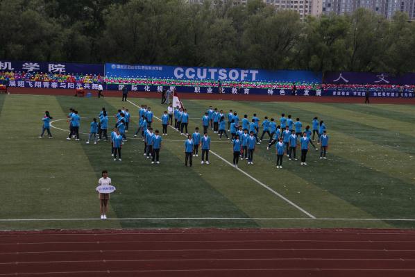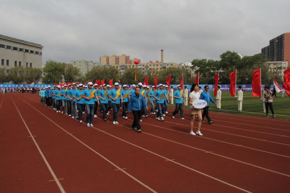 校旗和田径运动会会旗入场,并在校歌声中徐徐升起。2014年吉林省第十七届运动会羽毛球男子单打、男子双打冠军王奕龙同学,赛事主管、体育教研部副主任杨继华分别代表全体运动员、裁判员宣誓。