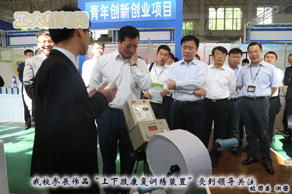 本届“创青春”大学生创业大赛中,我校有六件作品进入终审答辩。最终,我校选送的《GPRS个人定位追踪智能拐杖伞》获得金奖,《基于物联网-云计算的康馨医疗健康管理体系》、《转炉喷溅计量预报分析仪》【电气】、《长春果健商贸有限公司》3项作品获得银奖,《健“糠”之源系列产品》【电气】、《上下肢康复训练装置》2项作品获得铜奖。终审答辩会后,吉林省大学生科技创新项目“创投广场”推介会在长春理工大学体育馆举行。竺延风饶有兴致的参观了创投广场我校参展项目,并与我校学生进行了深入交流。