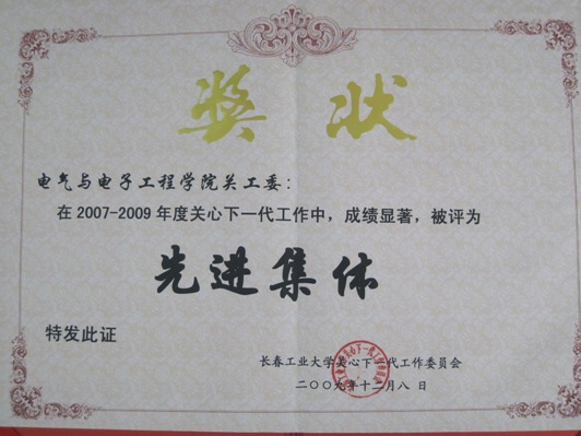 91猫先生 关工委在2007-2009年度关心下一代工作中荣获先进集体称号
