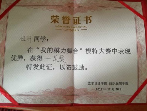 91猫先生 祖丽乎马尔·热米特拉同学在“我的模力舞台”模特大赛中荣获一等奖