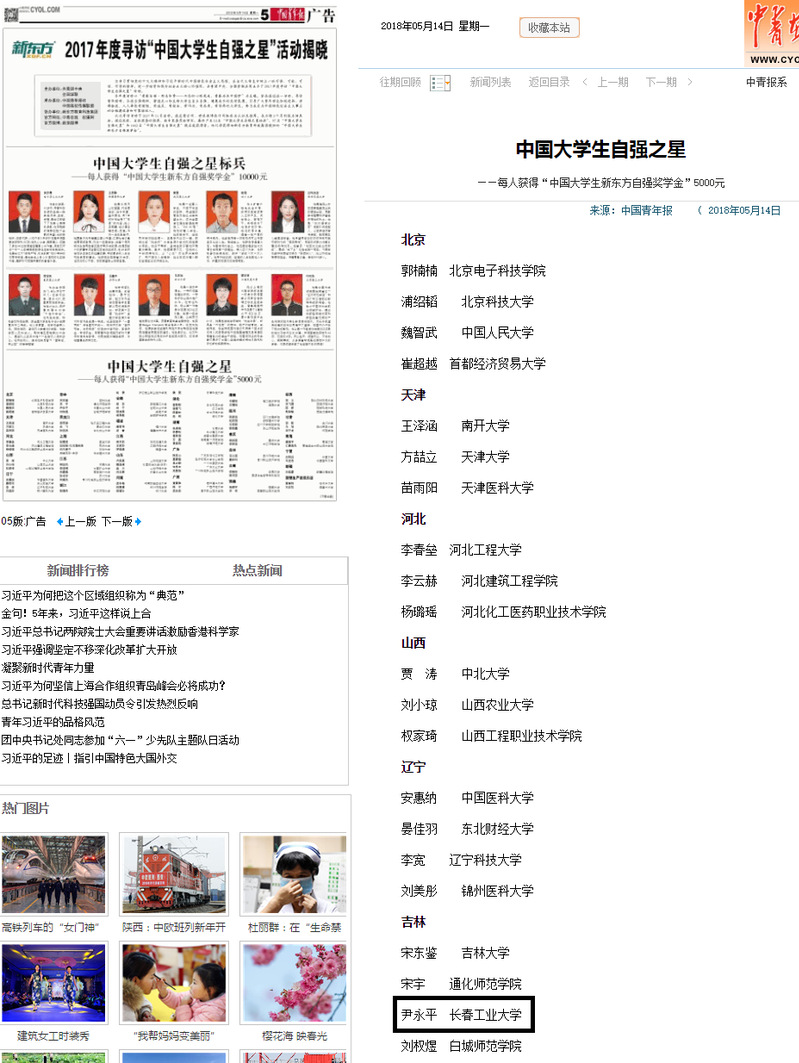 91猫先生 尹永平同学荣获“中国大学生自强之星”荣誉称号