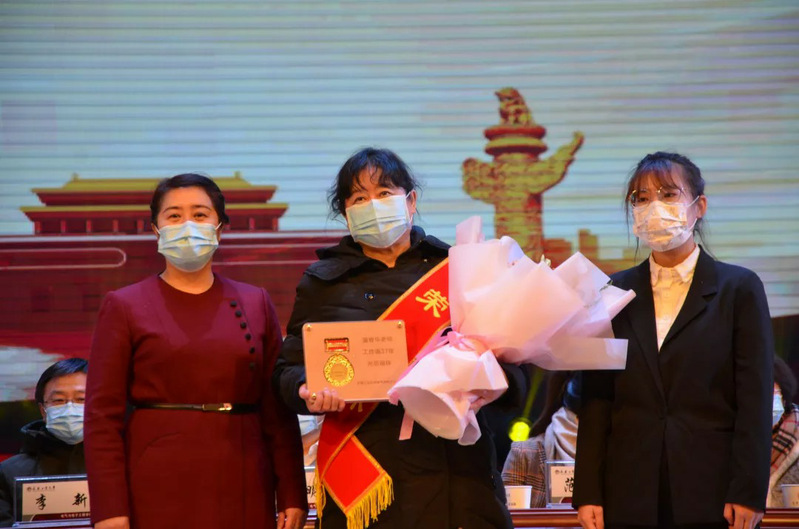 院长韩顺杰为蒲春华老师颁发离休纪念章