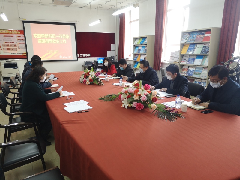 开展就业指导及调研工作。学院党委书记杨景伟致欢迎词,副院长韩顺杰代表学院汇报就业工作。院党委副书记矫东海和学办主任单洪朱就学生就业工作面临的实际问题进行汇报探讨。