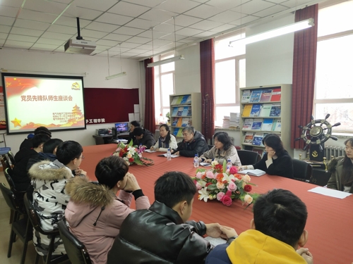 与党员先锋队师生开展座谈。学院关心下一代工作委员会主任蒲春华、学院党委书记王丽娜、专职组织员李昆、朱博参加座谈。