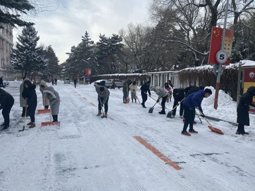 本网讯(通讯员 田鑫)近日由于降雪不断,校园内出现“忽如一夜雪花来”的场景,伴随着凛冽的寒风,气温骤降,给全校师生带来安全隐患,给校园道路交通带来诸多不便。为保障全校师生出行安全,11月18日中午,电气学院组织全体学生党员及第45期发展对象对分管区域的积雪进行了及时清扫。