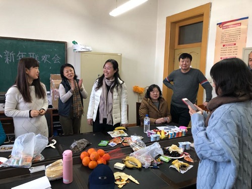 各教工单位联欢会准备了丰富的水果小吃,设计了一系列趣味横生的小游戏,例如:歌曲接龙、你比我猜、歌曲对唱等。活动中教职工们全情投入、群策群力、互助互信、积极沟通、充分发挥团队协作精神,积极完成每一个项目。