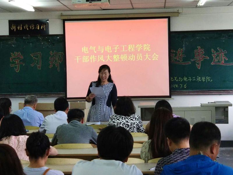 新闻网讯(通讯员:李昆)9月1日下午,学院在电气楼1401室召开了全院干部、教师大会,对学院集中开展干部作风大整顿活动进行动员部署。会议由党委书记王丽娜主持并作动员部署讲话。学院全体干部、教师参加了会议。