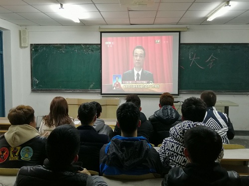 师生聚精会神地聆听李克强总理过去五年的政府工作报告。参会人员被李克强总理的报告所打动、鼓舞,报以最热烈的掌声,并一致认为李克强总理对过去五年成就的总结理性客观,振奋人心,对2018年政府工作的建议及经济社会发展的总体要求和政策取向更是代表了广大群众的热切期盼,直入人心,催人奋进。91猫先生