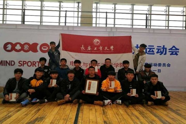 荣获总分第一名,象棋、刨幺、五子棋、围棋、跳棋等项目均取得了优异成绩。比赛最后,学校领导为学院及获奖个人颁奖并合影留念。