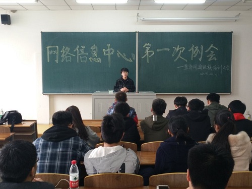 楼1301室开展本学期第一次例会暨新闻通讯稿培训大会。学院团委副书记娄婷婷,院社联主席唐正,院网络信息中心主任金蕾,院学生会副主席潘昱企,院学生会副主席于忠尧出席了本次培训大会。