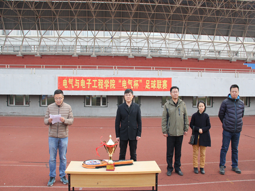 于近期举办了“电气巨星杯”足球赛,并于11月6日中午12时,在南湖校区足球场进行了决赛,学院党委副书记矫东海、学院团委书记高博、辅导员助理李晓晗出席了本次活动。