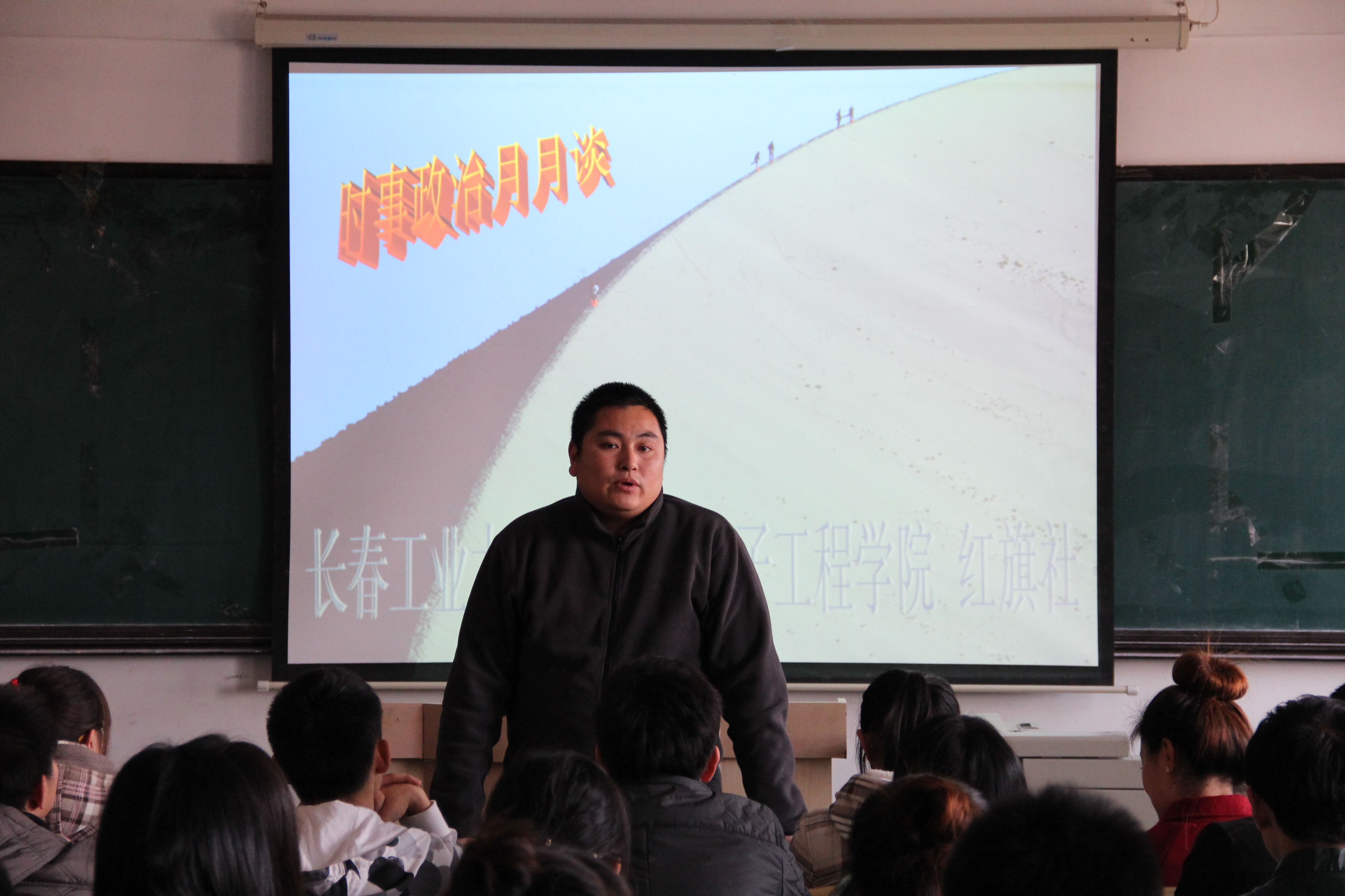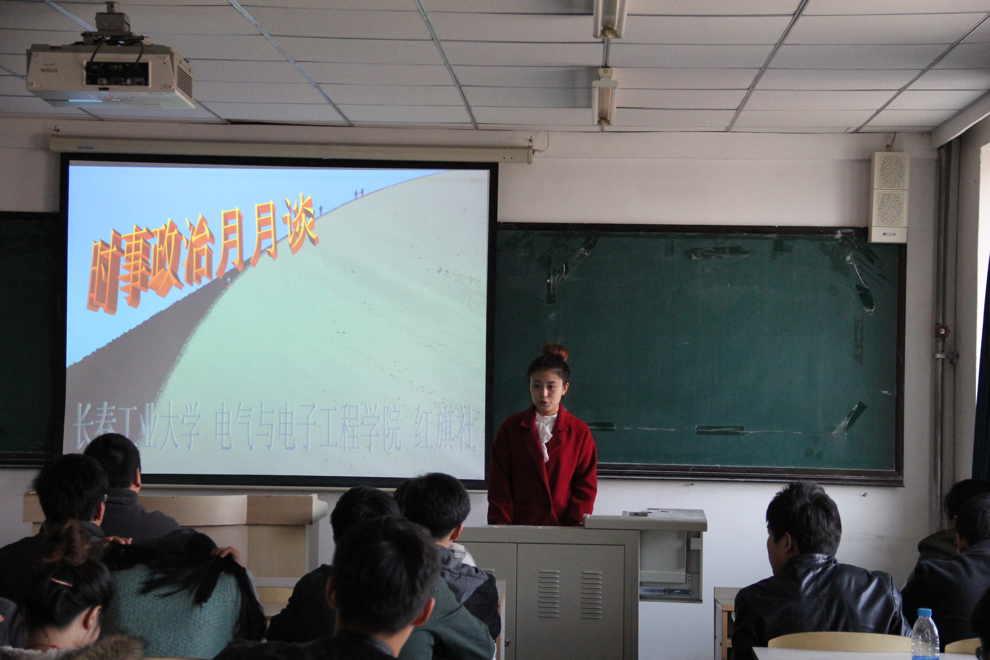 红旗社于主楼1401室举办“时事政治月月谈”理论学习活动。参与本次活动的有学院学生党支部书记郑洪斌和办公室全部老师以及各年级学生会干部、红旗社社员等。