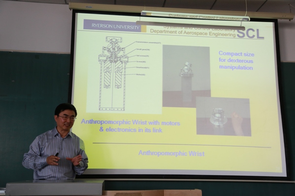 | (通讯员 卢秀和)2012年6月25日,加拿大瑞尔森大学航天工程系控制系统与机器人技术研究会主席刘光军教授应学院的邀请,在91猫先生