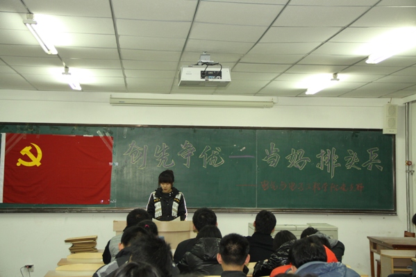 赵老师首先就新华网上的一篇题为《创先争优精神是人类社会进步的不竭动力》的社论论证了创先争优的社会价值,并向同学们提出学生党员如何践行创先争优。同学们针对主题展开激烈讨论,分别在学习、生活和工作等方面发表了自己的理解和感想,结合自己在理论学习、群众服务、班级工作和寝室学风建设上与同学们交换了经验,并表达了自己在今后创先争优活动中具体规划和决心,承诺努力做到:带头学习提高、带头争创佳绩、带头服务群众、带头遵纪守法、带头弘扬正气。