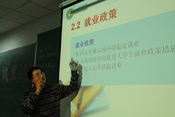 学院学生党支部书记赵爽系统而全面的讲解就业程序、就业准备、就业协议书的签订、办理就业报到手续和就业过程中需要注意的问题。会上赵老师用生动的例子结合学生在近两年就业期间遇到的困难和陷阱给同学们以提示,并教会同学们如何找到工作同时维护好自己的正当利益。最后赵老师强调了就业前期准备要充分、信息获取要及时、重视就业礼仪、看准时机出击、求职技巧得当。赵老师愿各位同学认清形势,把握政策,做好准备,以积极的心态去面对就业。