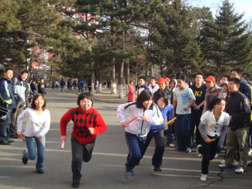 在篮球场举行了纪念一二·九运动七十三周年“激情与讴歌”趣味接力赛。参加本次活动的领导有学院党总支副书记周文军老师及学院学生工作办公室全体老师。 本次活动在大一、大二、大三学生中展开,分别以班级、组合班级、专业为单位,每3女4男7名队员为一队,共23支队伍,分四组进行3*400,4*800米接力赛。赛道上设有一二·九运动历史知识问答和跳绳两关,不答题或答错一题在总成绩中扣除3秒。比赛中队员们奋力争先,队员们丰富的知识和敏捷的思维在答题环节中表现的淋漓尽致。比赛结束后综合评定结果:080312班、080309班、080304班获得前三名,活动在胜利的欢呼声中圆满结束。 这次活动使学生们在娱乐的同时加深了对一二·九运动的认识,增强了同学们的爱国热情和历史使命感,同时丰富了同学们的课余生活,促进了班级团结。