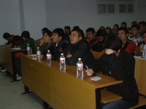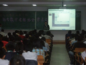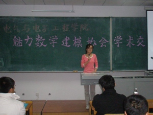的姜鸣燕、姜珊、汪杨、孙磊同学分别就数学建模历史、比赛组织、比赛程序、比赛注意事项等详细向同学们做介绍。会长姜珊同学阐述了数学建模的定义:用数字来描述对象;校记者团团长孙磊通过实例讲解数学建模竞赛过程中论文撰写;院宣传部部长汪洋同学讲解了计算机在数学建模中的应用;徐培新同学重点强调建模比赛中团体协作的重要性;张超同学介绍了自己参加全国数学建模的经历,其中优异的成绩让在场每一个同学赞叹不已!在姜鸣燕同学的讲解中,同学们了解到竞赛报名参赛,以及竞赛期间时间的分配。讲座到了尾声,现场爱好者们争先向交流同学提出自己的疑问,几名同学一一精彩的回答赢得了现场热烈的掌声,最后赵老师对活动进行总结并对全体同学提出殷切的期望。 通过这次学术交流会,同学们对数学建模的知识有了更深的了解,激发了同学们学习数学的兴趣。