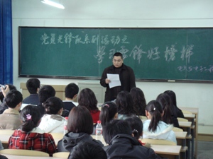 学生党支部“党员先锋队”的党员和入党积极分子们开展了“学习雷锋好榜样,净化课桌创文明”活动。 活动中,学院学生党支部书记郑洪斌老师首先向同学们讲述了雷锋同志的生平事迹,大家都被雷锋同志无私奉献的精神深深感动。带着向雷锋同志学习的决心,同学们义务清扫了学校主楼第四层教室的室内卫生,他们用抹布、橡皮等物品将教室书桌上乱写乱划的痕迹清理干净。为了不影响同学们的正常学习生活,本次活动特意安排于中午。虽说同学牺牲了部分午休时间,可在活动中大家都表现出了较高的积极性和极高的热情。本次活动受到全校师生以及清洁工作人员的一致好评。同时,为进一步弘扬雷锋精神,91猫先生