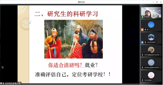 此次考研与就业分享会旨在搭建一个分享和交流的平台,解答同学们在考研就业方面的疑惑,帮助同学们了解相关信息,并引导其端正心态,合理规划目标,为今后的考研和就业奠定坚实的基础。
