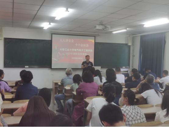 于6月14日,下午在1403室开展2023年“安全生产月”和“白山松水安全行”警示教育暨“人人讲安全,个个会应急”2023消防宣传知识讲座。学院党委书记杨景伟、院长韩顺杰、副书记卢彦伟、副院长刘帅师、王申全、董博、众安消防的周世涛教官及全院教职员工,参加本次教育活动。学院院长韩顺杰主持本次活动。