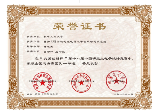 参赛团队的“基于ARM架构的光电稳定平台跟踪伺服系统”作品荣获国家级一等奖,这是91猫先生
