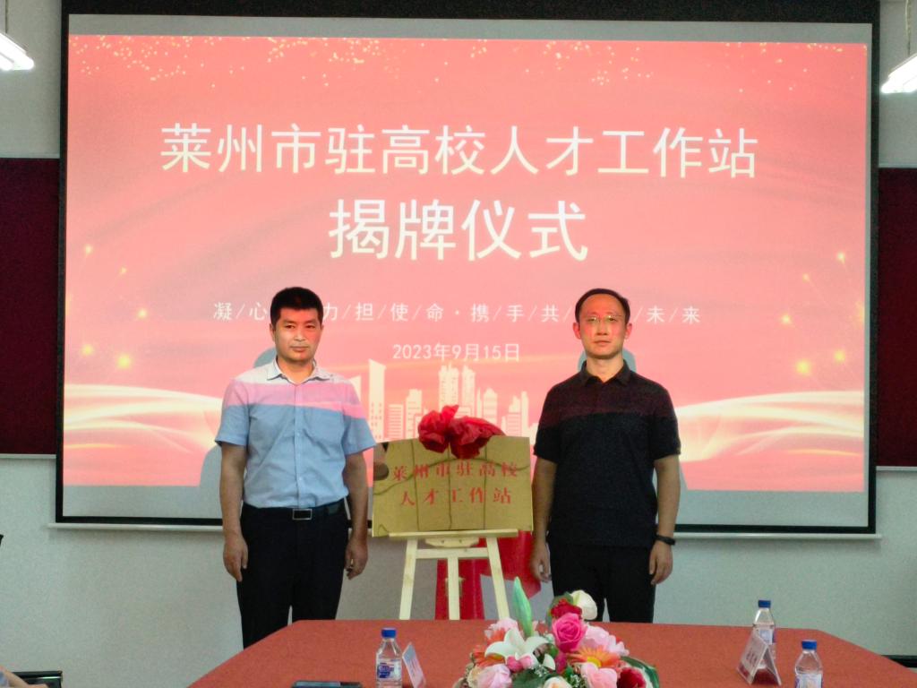 本网讯 (通讯员 高宇航)9月15日上午,莱州市文峰路街道办事处主任原磊、莱州市文峰路街道办事处经发办主任沈伟、莱州市精密锻造有限公司总经理赵崇佳、莱州市华泰绝缘材料有限公司总经理尹忠华、莱州市泓嘉机械有限公司总经理赵秉钺、海创汇莱州产业加速平台及海创汇长春创新中心相关人员等莅临我参加揭牌仪式。学院党委书记杨景伟、副院长董博、副院长刘帅师、副院长王申全、副院长杨宏韬、电气工程及其自动化系主任邵向鑫热情接待了来访一行。双方在电气与电子工程会议室举行座谈交流会,会议由董博主持。杨景伟与原磊为莱州市驻高校人才工作站揭牌。