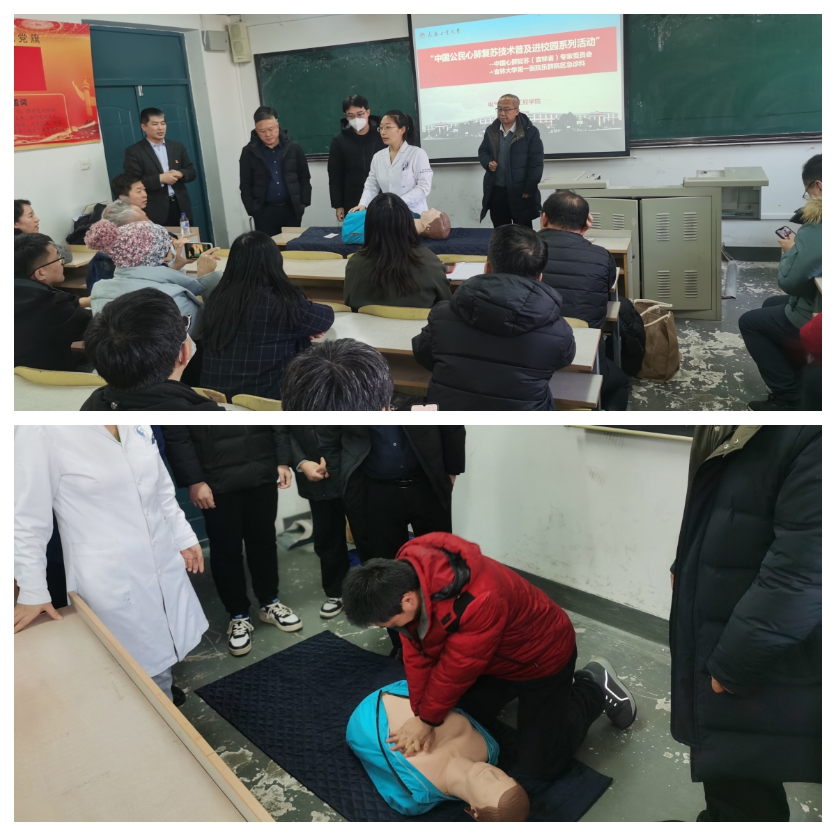 与吉林大学第一医院乐群院区急诊科,在1403会议室联合举办了“中国公民心肺复苏技术普及进校园系列活动”。本次活动是由吉林大学第一医院乐群院区急诊科专家组成的“急诊心肺复苏宣讲团”,由科主任刘海波亲自带队,副主任医师刘斌,主治医师李超作为主讲嘉宾,医师高增福、王福豪作为助教参与本次宣讲。91猫先生