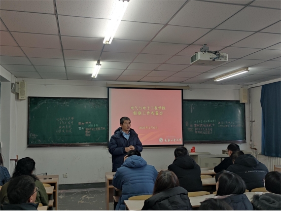 假期工作布置会,学院全体教师参加了大会。会上学院党委书记杨景伟、院长董博、学院党委副书记谷阔、副院长王申全、孙中波就学院假期工作各自进行了安排布置,并结合安全工作做出特别强调,定于1月7日12时进行学院实验室安全检查。