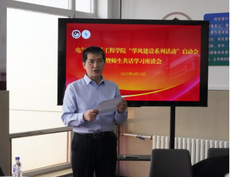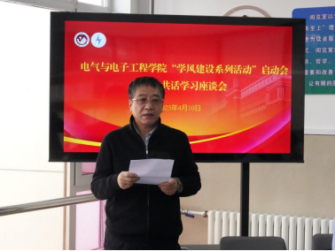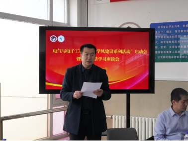 学院院长董博讲话,他讲到,学院始终坚持以学风建设为根基,以学术创新为驱动,在人才培养、学科建设和科研攻关等方面取得显著成效。在学科建设方面,本科专业建设成果突出,形成了特色鲜明的学科体系。科研工作始终走在学校前列,紧密对接产业需求,产出了一批具有重要影响力的创新成果。并表示,学院全体教师将以更加饱满的热情投身学风建设,进一步优化学术生态,为学院高质量发展注入强劲动力。