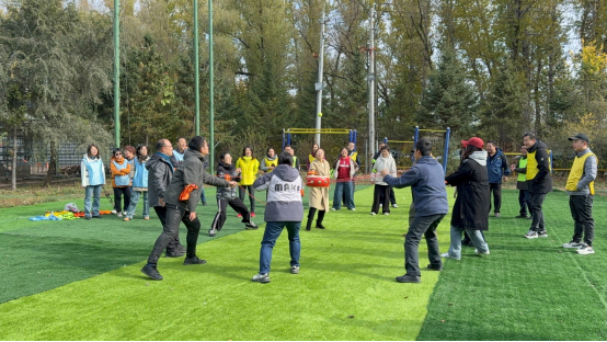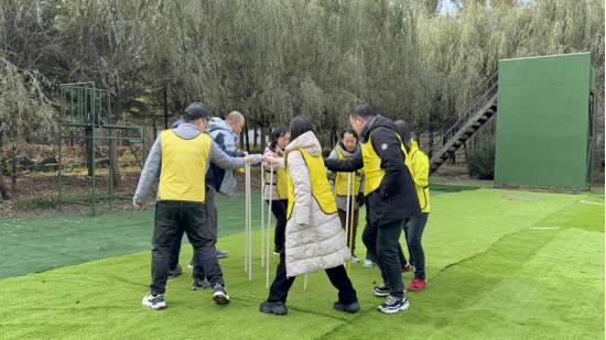 拓展活动环节中,教师们依据指挥分组,在教练的组织下开展“挑战150、疯狂踩气球、雷区取水、车轮滚滚”四项拓展游戏。各小组充分发挥创意与智慧,成员之间相互配合、相互支持。有的小组在讨论策略时各抒己见,最终达成共识;有的小组在执行任务过程中,不断调整分工,展现出强大的团队适应性。大家全情投入,为了共同目标齐心协力,现场气氛热烈而和谐。
