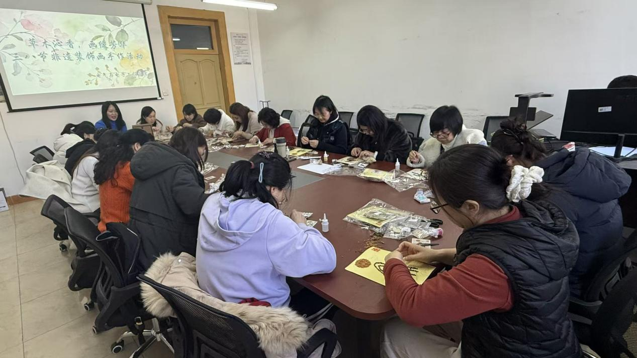 工会、妇委会于3月4日在电气楼1315会议室组织全体女教职工开展“草木沁香,画绽芳华”非遗装饰画手作活动。